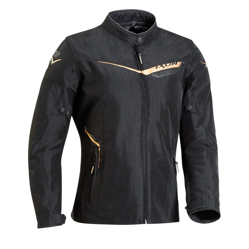 Эта текстильная куртка обладает всеми необходимыми качествами, которые требуются от мотоциклетной куртки: сертифицирована CE, водонепроницаема, дышащая, со съемной термо-подкладкой для большей универсальности; и такая стильная!