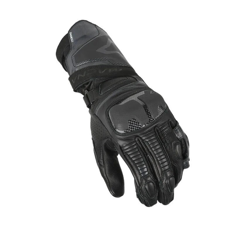 Thandor изготовлена из козьей и коровьей кожи, а ладонь усилена дополнительным слоем для повышения стойкости к истиранию. Он оснащен трикотажной подкладкой, а отсутствие мембраны предотвращает его вспотевание в жаркую погоду. Вставка между большим пальцем и тыльной стороной ладони перфорирована для повышения воздухопроницаемости.