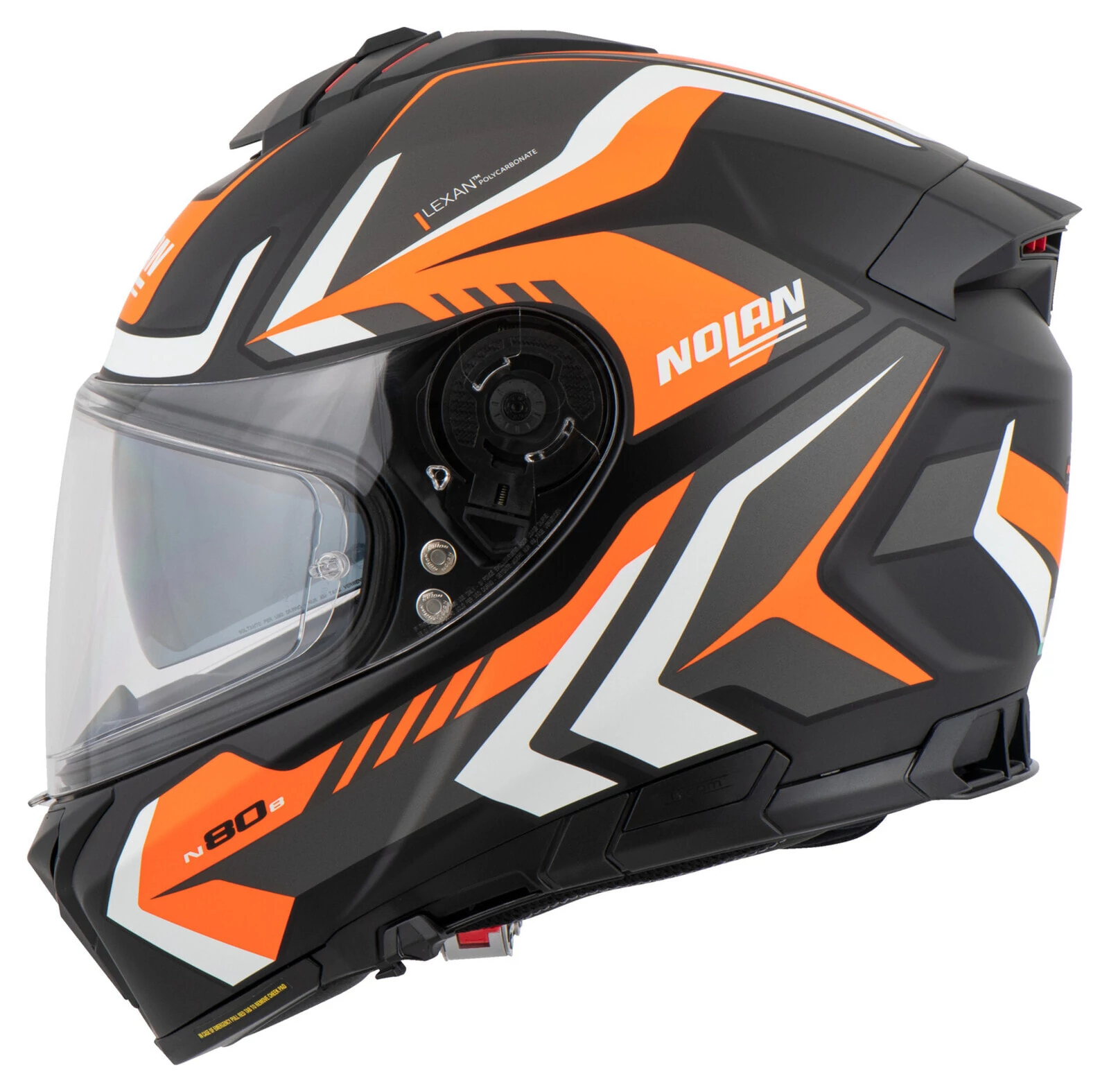 Nolan N80-8 сочетает в себе современный итальянский дизайн с новейшими технологиями. Лучшая вентиляция, особенно удобный интерьер, подкладка, регулируемая в верхней части головы. Недавно разработанный механизм забрала гарантирует, что забрало находится только на последних миллиметрах от кольцевого уплотнения на шлеме, но затем точно и равномерно прилегает к нему. Преимущество в том, что внутренний козырек Pinlock больше не задевает уплотнение забрала и, таким образом, может заметно увеличить площадь поверхности. Кроме того, Nolan *N80-8* оснащен системой аварийного разблокирования Nolan (NERS) для большей безопасности за счет быстрого снятия накладок на щеки в случае падения.